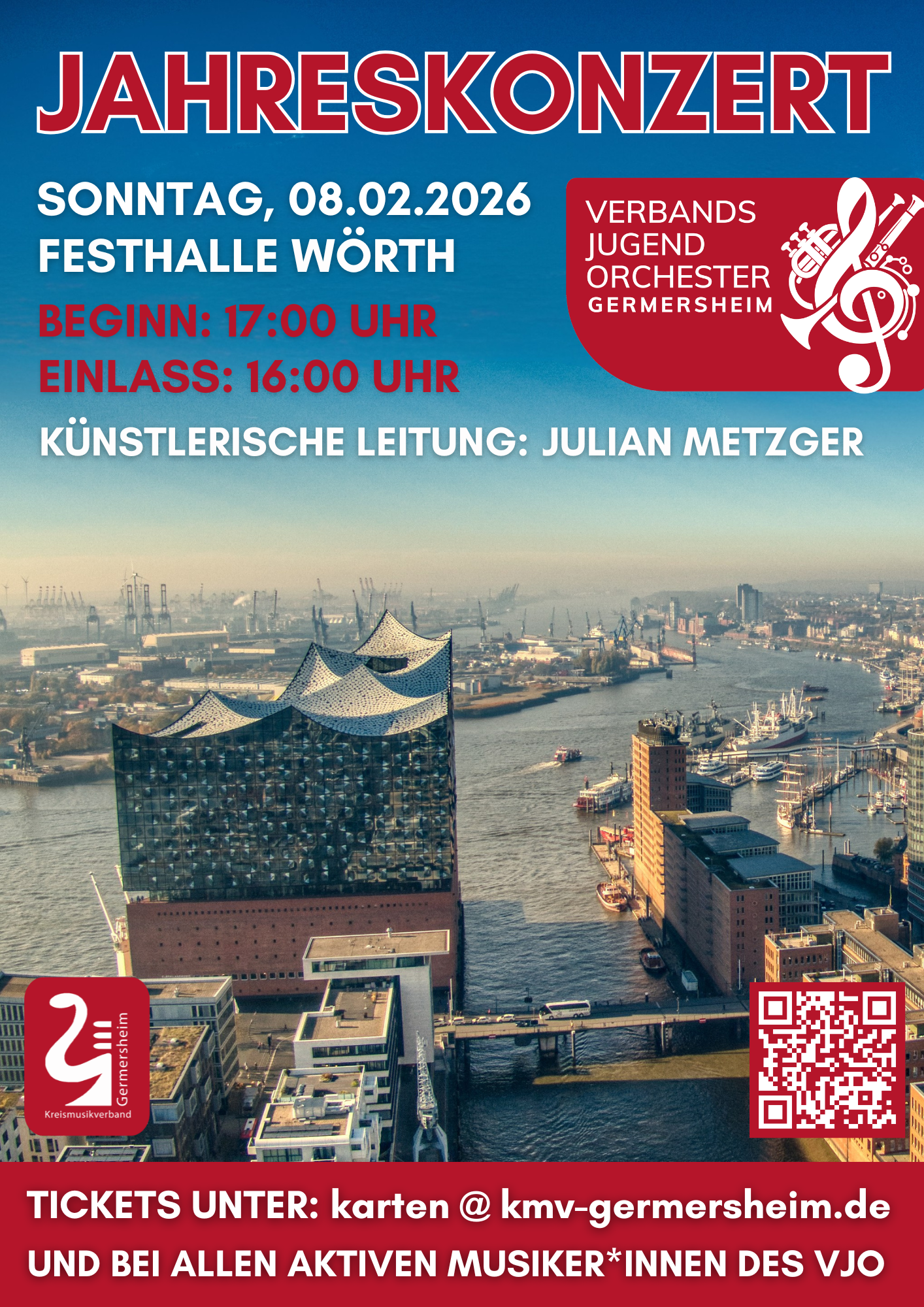 Das Verbandsjugendorchester Germersheim lädt am Samstag, den 8. Februar 2026, zum Jahreskonzert in die Festhalle Wörth ein.